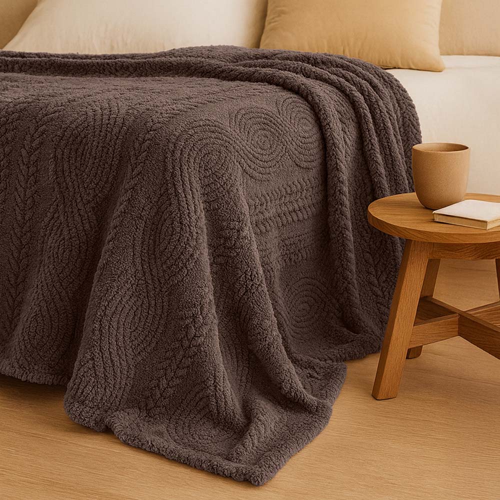 Каждое изделие выполнено в изысканном матовом цвете, который придаёт интерьеру уют и элегантность. Объемное тиснение в виде оригинальных узоров добавляет пледу фактурности и делает его настоящим произведением искусства. Благодаря повышенной плотности и улучшенной конструкции, наши пледы обеспечивают высочайший уровень комфорта и тепла.