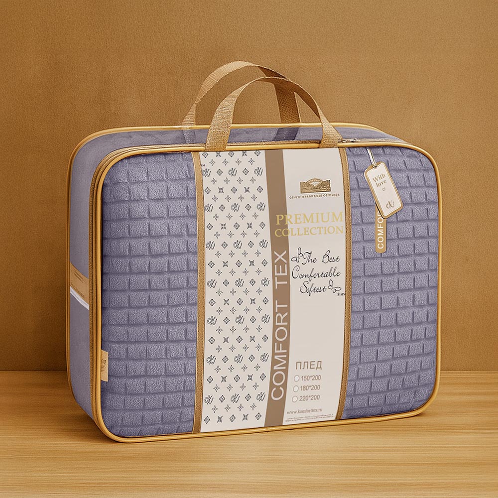 **Авторская коллекция дизайнов** Каждый плед — результат работы талантливых дизайнеров, вдохновленных современными трендами. Оригинальное тиснение в виде квадратов придаст вашему интерьеру изысканность и индивидуальность.